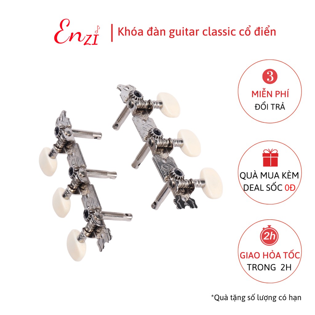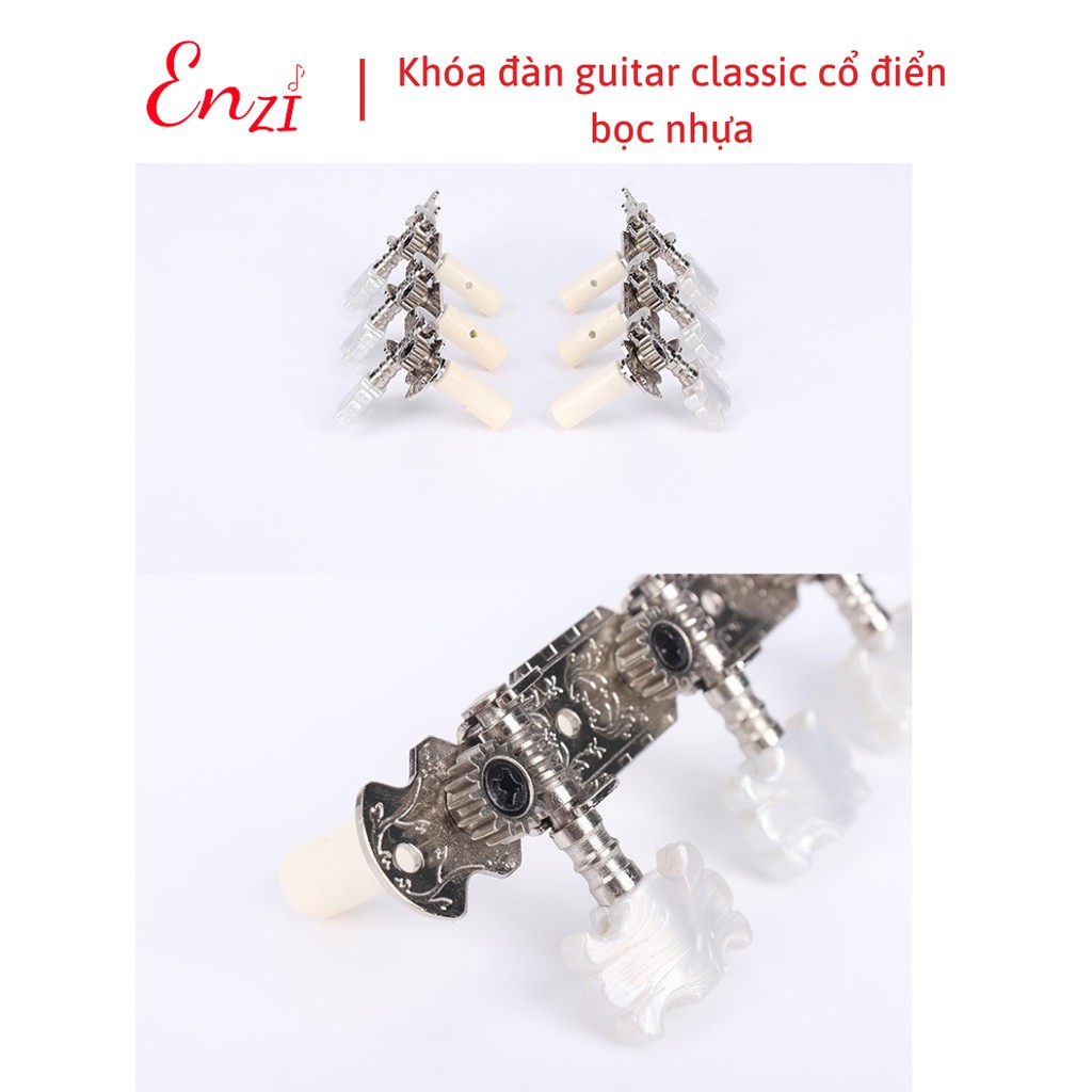 Bộ khoá đàn guitar classic liền 2 vế có kèm ốc vít thay thế EnziKhóa đàn là phần thiết yếu của đàn guitar. Chúng giữ các dây đàn guitar trên đầu đàn và được điều chỉnh để thay đổi độ căng của dây giúp dây có được độ cao chính xác.