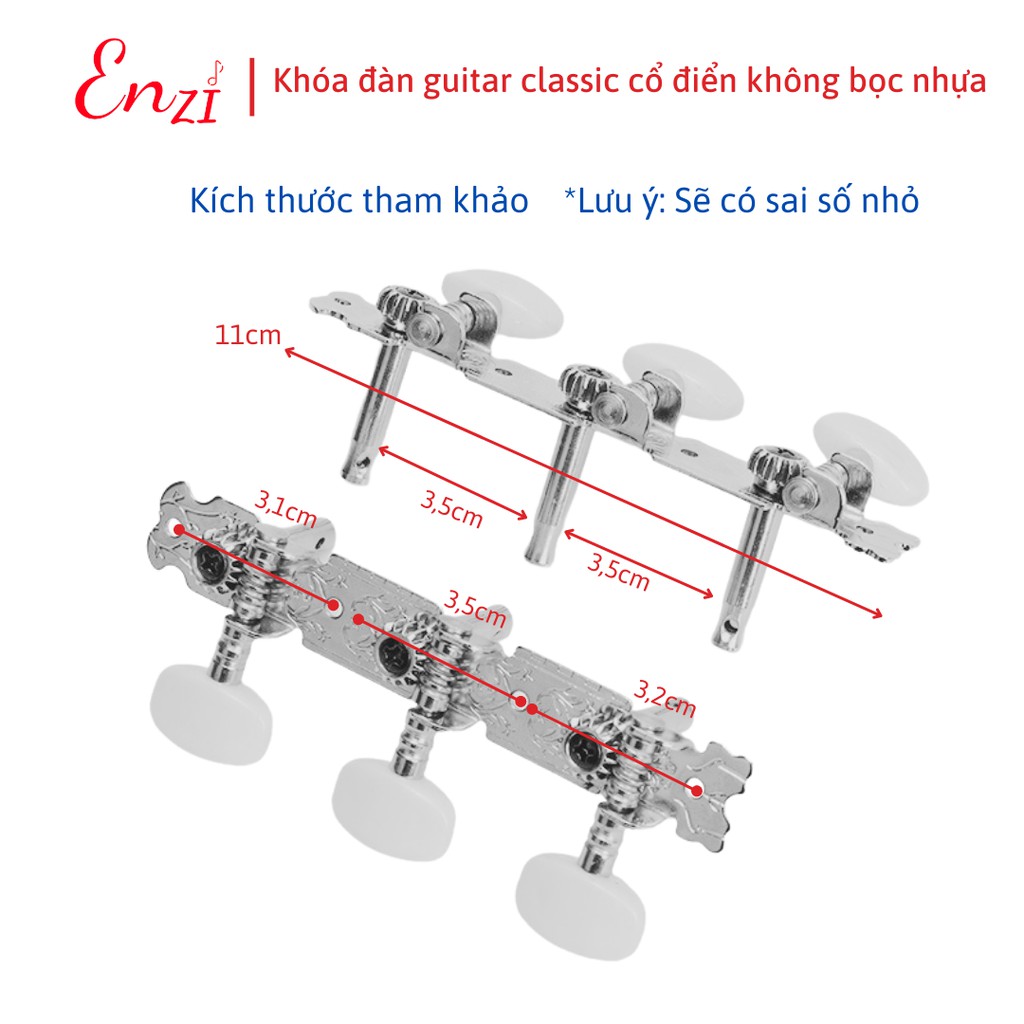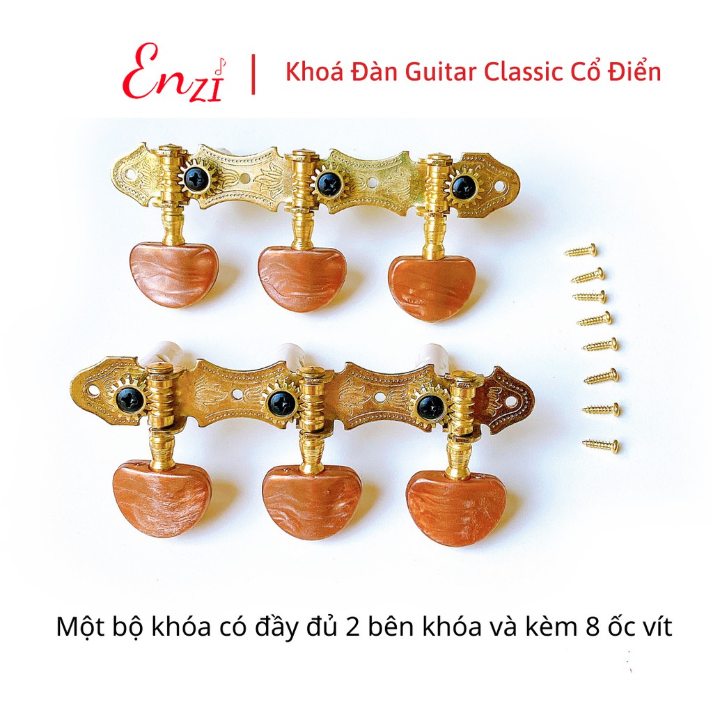 Khoá đàn guitar classic đàn cổ điển nylon có liền 2 vế kèm ốc vít thay thế Enzi