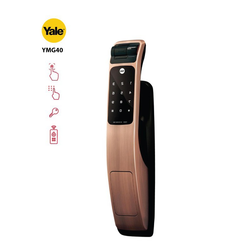 Ưu điểm Khóa Điện Tử YALE YMG40:Kiểu mở khóa:Vân tay, mật mã, Chìa cơ, Điều khiển từ xa (mở rộng), Mở rộng mở khóa bằng Bluetooth; Mở rộng hệ thống Smarthome chuẩn Zware và ZigBee