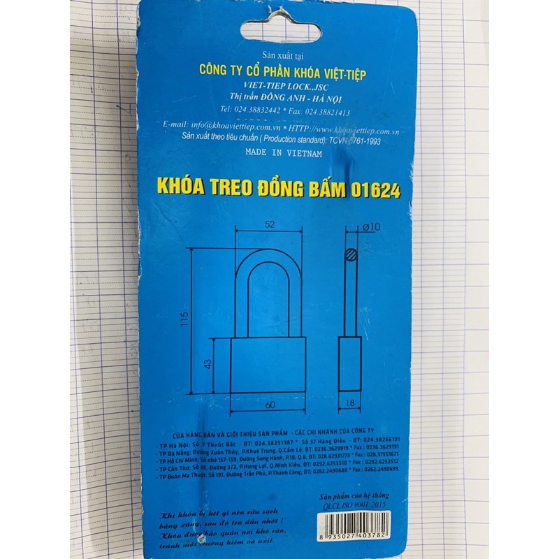 Khoá đồng bấm VIỆT TIỆP 6 PHÂN 01624 CÀNG KHÓA DÀI