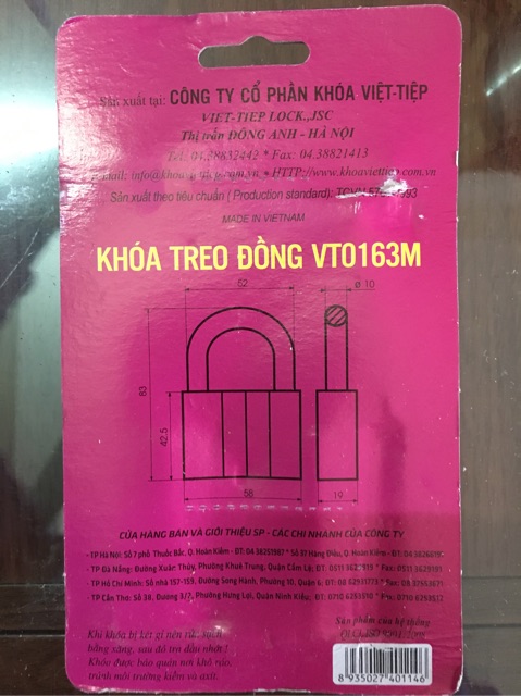 Khoá đồng chìa Việt Tiệp cầu 10 chính hãng
