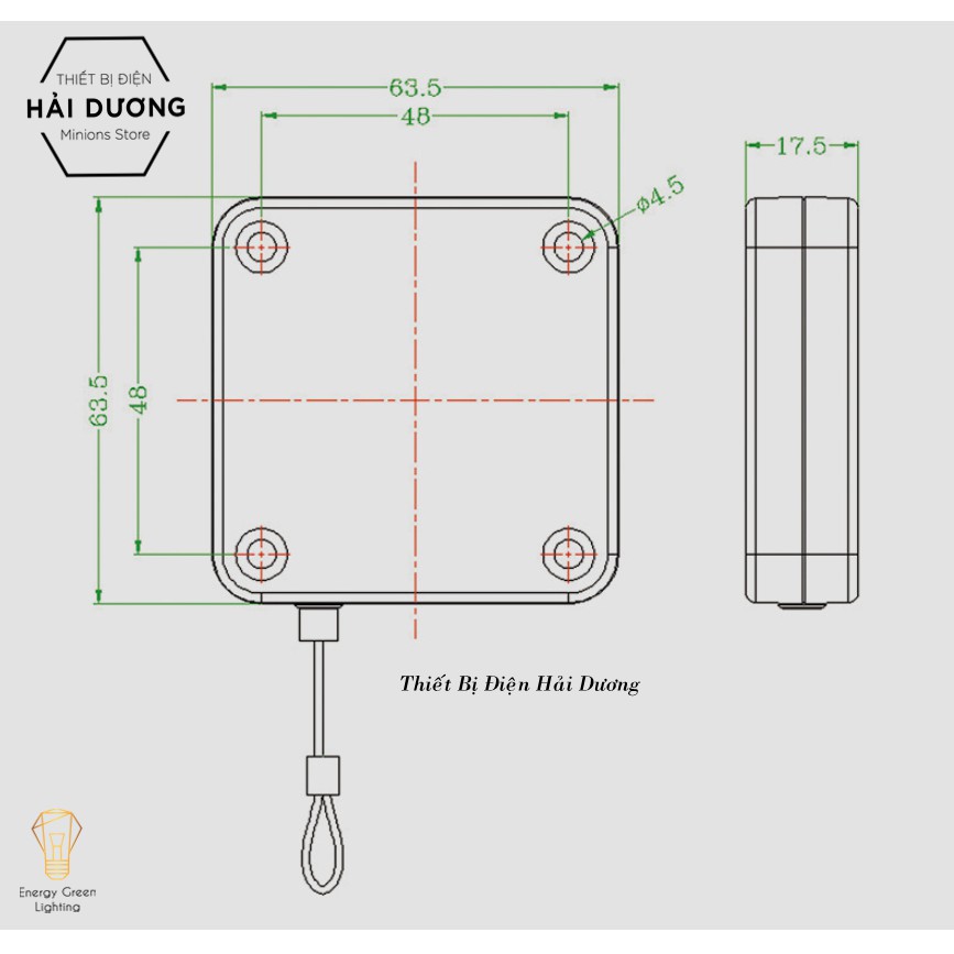 Kích thước sản phẩm (D x R x C): 6.3 x 6.3 x 1.6CM