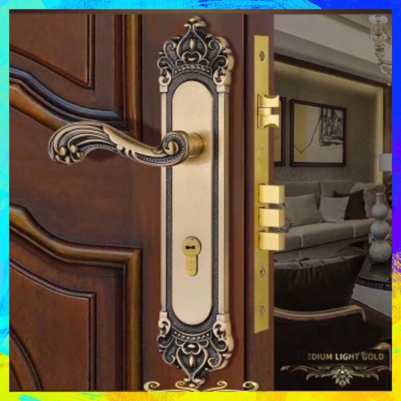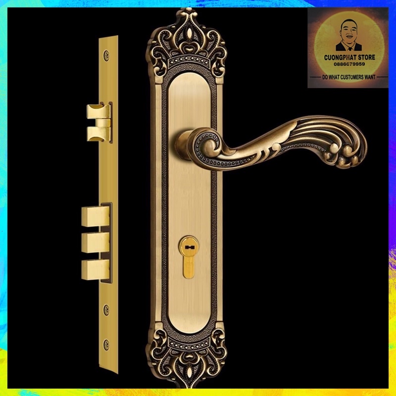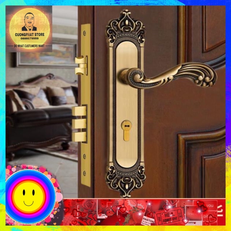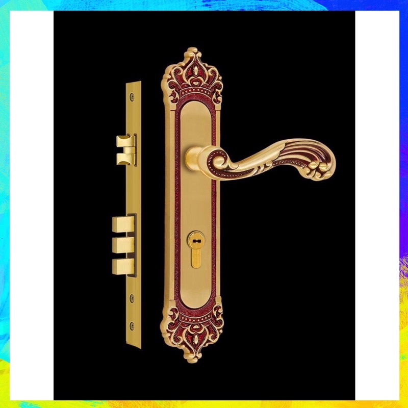 *KHOÁ CỬA TAY GẠT được làm bằng đồng, Hoạ tiết bắt mắt với 2 màu Vàng viền đen và Vàng viền đỏ làm cho cánh cửa của bạn trở nên sang trọng