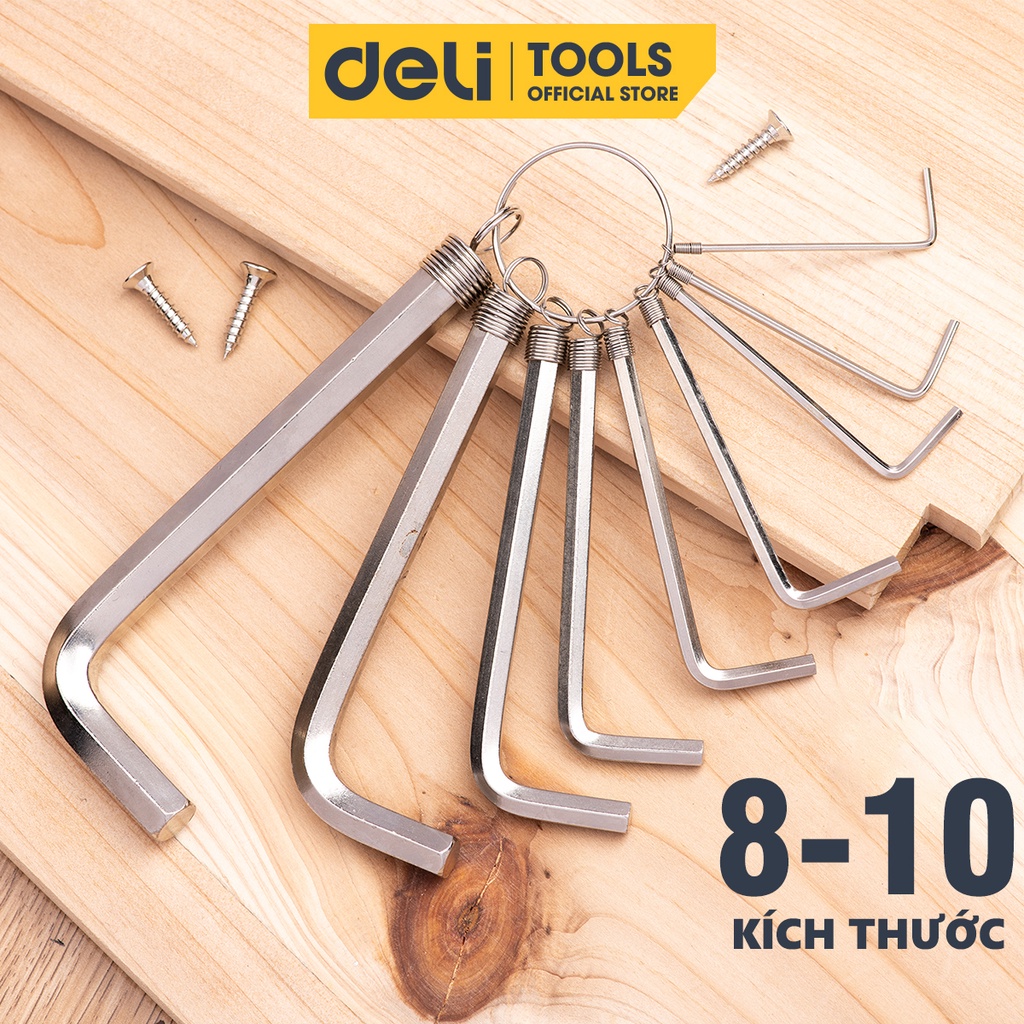 Giới thiệu Bộ Khóa Lục Giác Chữ L Đầu Bằng Deli Cao Cấp Chính Hãng - Kích Thước 1,5 - 10mm - Có Móc Khóa Tiện Dụng - EDL3080