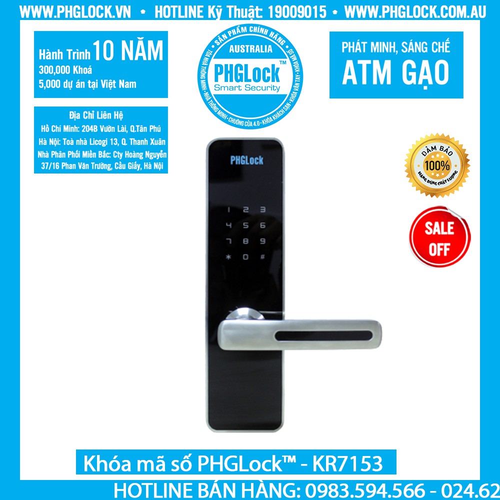 Nhà cửa & Đời sống > Bảo hộ gia đình > Khóa, ổ khóa || Khóa mã số,thẻ từ cho cửa gỗ,thép chống cháy PHGLock™ - KR7153 màu bạc chính hãng bảo hành 24 tháng .Còn hàng
