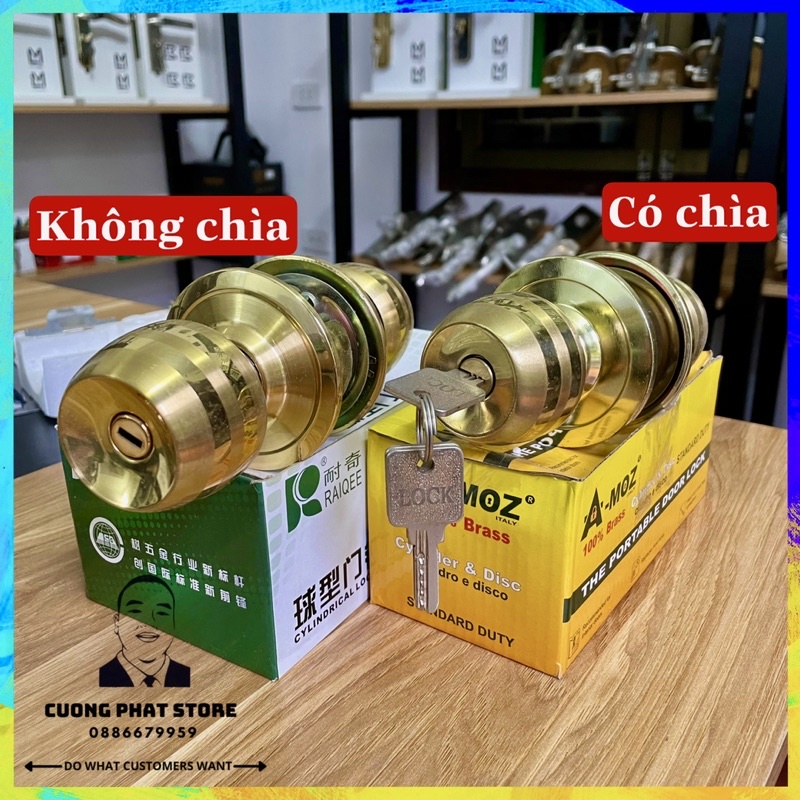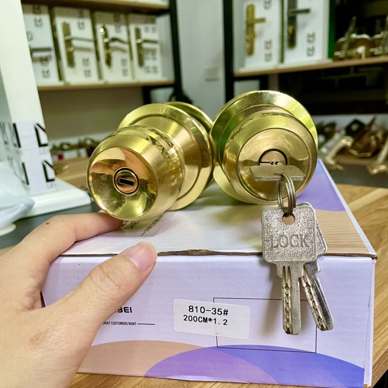 Nhà cửa & Đời sống > Bảo hộ gia đình > Khóa, ổ khóa || Khoá nắm tròn màu vàng không chìa A-Moz chất liệu inox lắp cho cửa vệ sinh, cửa phòngCòn hàng