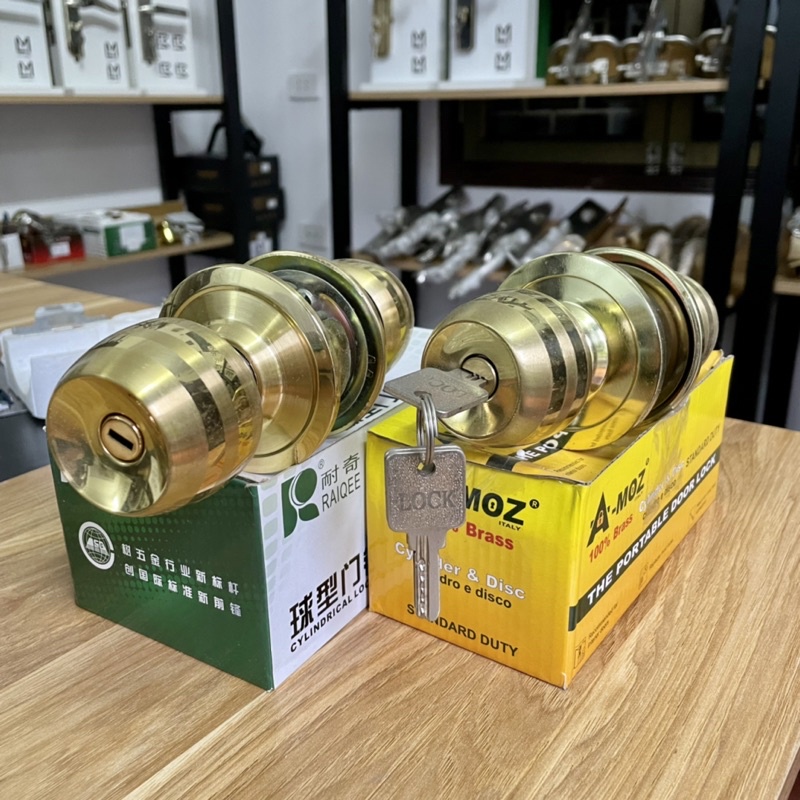 Khoá nắm tròn màu vàng không chìa chất liệu inox lắp cho cửa vệ sinh, cửa phòng bếp Hãng A-MozKHOÁ NẮM TRÒN AMOZ Màu vàng có viền nổi trông khá bắt mắt.