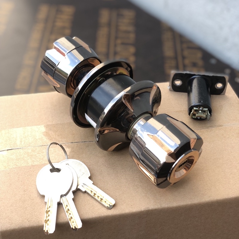 Nhà cửa & Đời sống > Bảo hộ gia đình > Khóa, ổ khóa || Khoá nắm tròn RAIQUEE dành cho cửa gỗ 2 màu vàng đen vàng khoá đấm trònCòn hàng