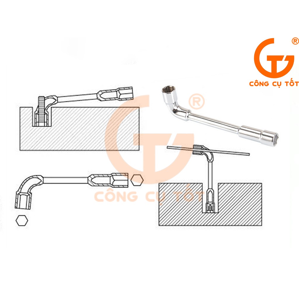 Các thiết bị máy móc, xe mô tô, ô tô thường sử dụng các chi tiết liên kết như bu lông, đai ốc có dạng lục giác. Để mở được chi tiết này thì cần đến các dụng cụ vặn cầm tay như cờ lê, mỏ lết, tay vặn chữ T, tay vặn chữ L, tay vặn bánh cóc, … Nhưng trong một số trường hợp, đối với những chi tiết đai ốc dày, bu lông dài, bu lông đai ốc cường độ cao hoặc đơn giản là không gian hẹp thì những dụng cụ như cờ lê, tay vặn thông thường khó có thể thao tác, thậm chí là không thể thao tác được. Công Cụ Tốt xin giới thiệu điếu lỗ (cờ lê chữ L có lỗ) sẽ giúp bạn giải quyết được những vấn đề trên.Chất liệu: Thép CR-V độ cứng cao, nhẹ, chịu lực, chịu nhiệt, chống xoắn, chống ăn mòn, mài mòn, ...
