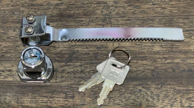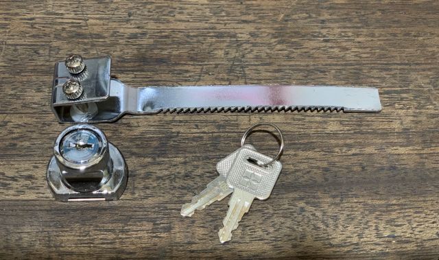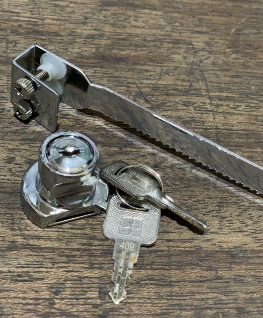 Khóa răng cưa tủ lùa cao cấp . Thích hợp sử dụng cho cửa kính từ 3_5mm .Ruột và chìa Khóa được làm bằng thau .