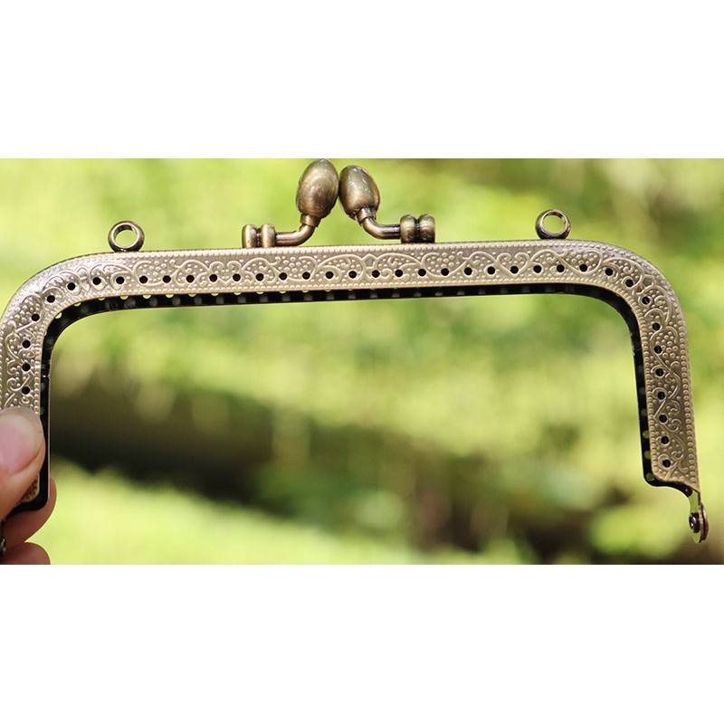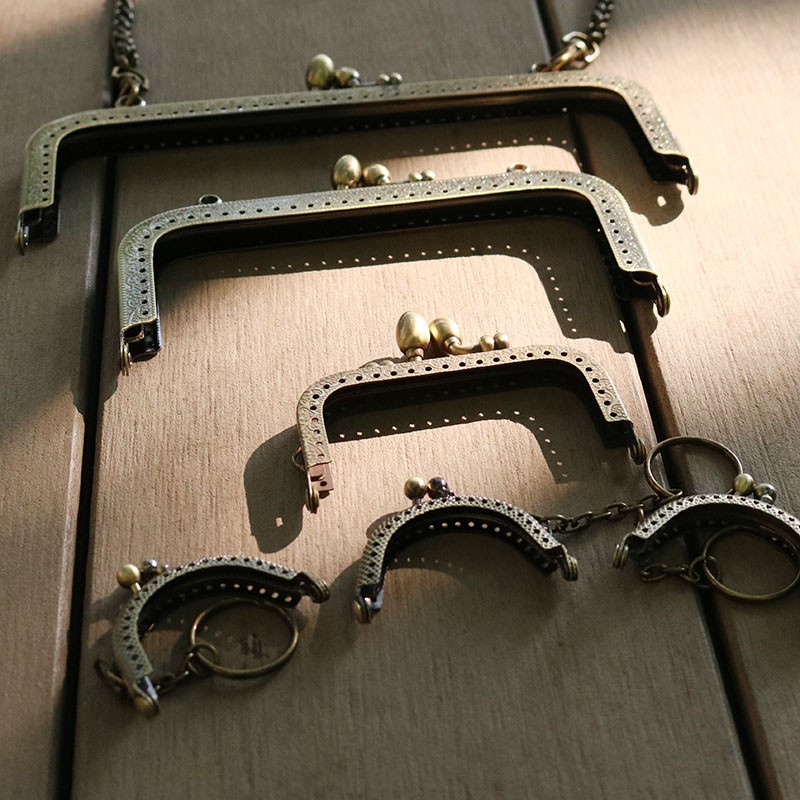 Khóa sắt dùng để may túi xách, túi đựng mỹ phẩm, tiền xu v.v...Chất liệu kim loại không gỉ, mạ đồng giả cổ, không bay màu, chốt khóa vừa vặn, chắc chắn.