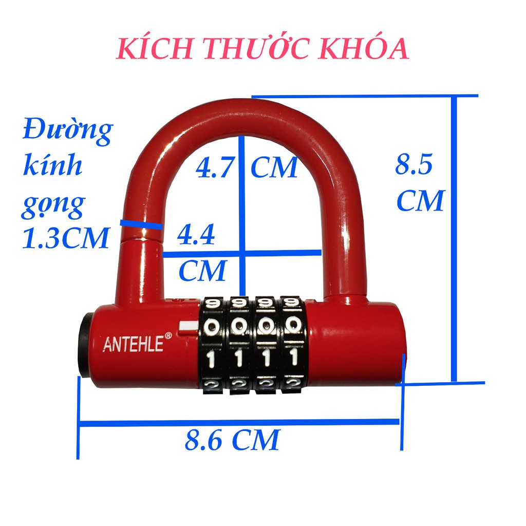 Giới thiệu Khóa số ANTEHLE 4 số thay đổi được mật mã - màu đỏ