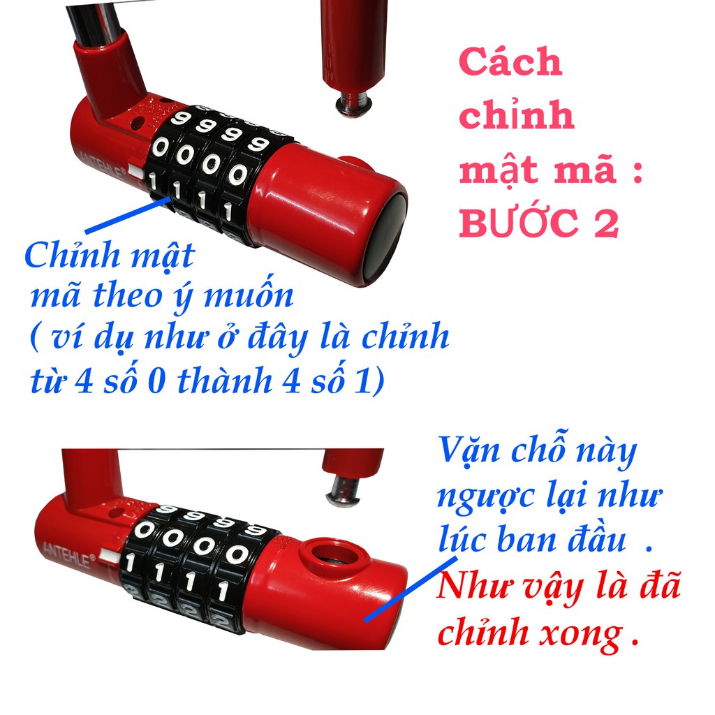 + Lưu ý : khi chỉnh mật mã phải tập trung để chỉnh đúng và nhớ số. Vì nếu quên số thì sẽ không mở được khoá .