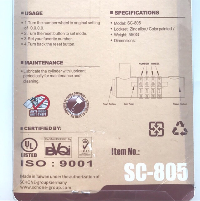 Nhà cửa & Đời sống > Bảo hộ gia đình > Khóa, ổ khóa || Khoá số càng dài 245mm SCHONE chính hãng SC-805Còn hàng