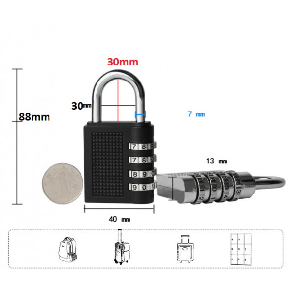 Ngoài chức năng dùng để khóa cửa; bạn có thể dụng ổ khóa này để khóa vali; ba lô du lịch; túi xách; hộp đựng đồ cá nhân; ngăn tủ….