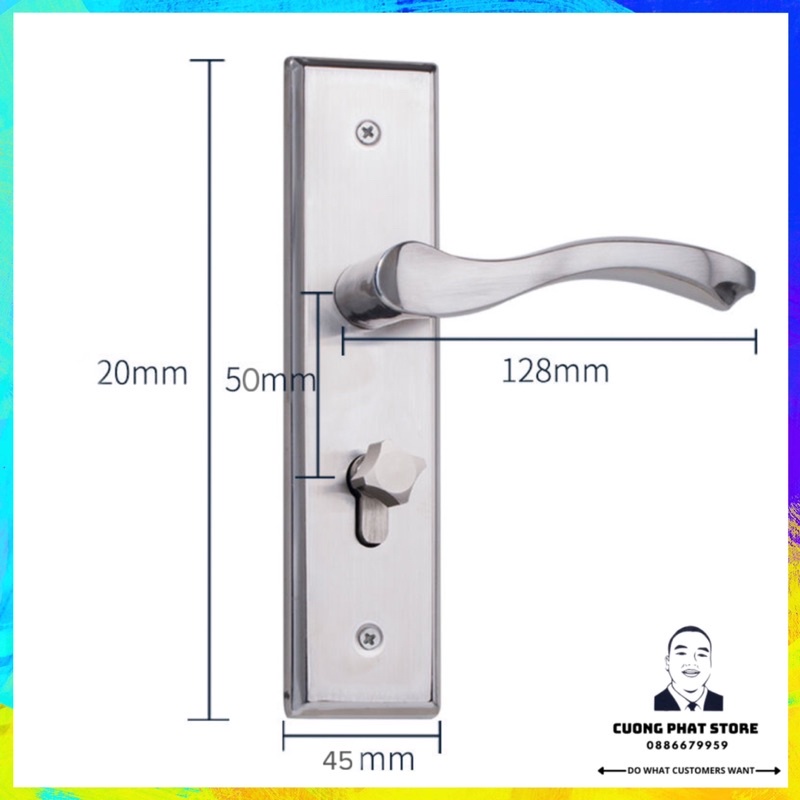 Khoá tay gạt dành cho cửa gỗ phòng trọ, phòng ngủ, phòng khách đẹp chất liệu bằng inox•Tổng chiều dài 20cm