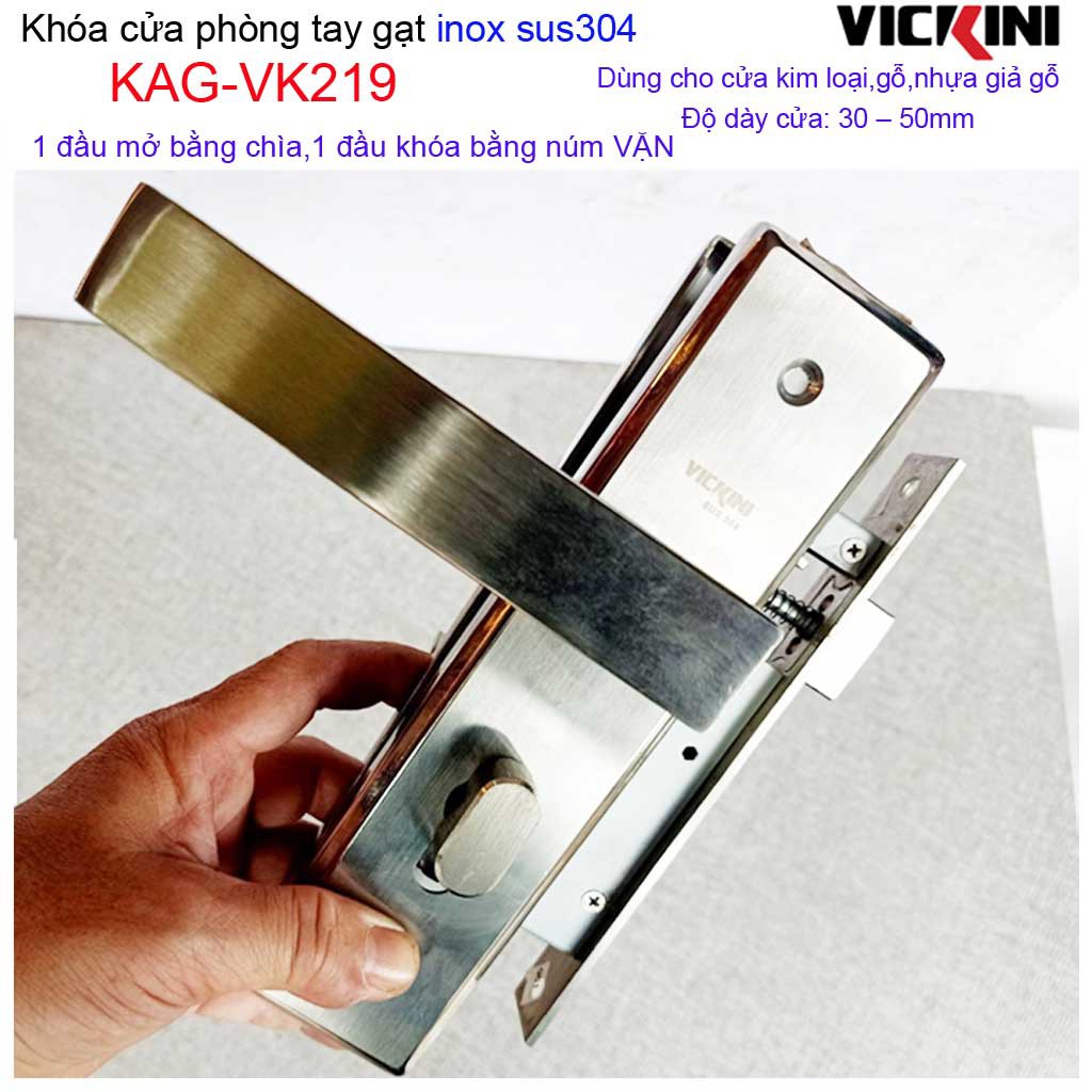 Khóa tay gạt Vickini, khóa tay gạt 1 đầu vặn 1 đầu chìa, khóa phòng tay gạt trọn bộ KAG-VK219 dùng cho khóa cửa phòng, khóa cửa văn phòng, khóa phòng tắm WC...