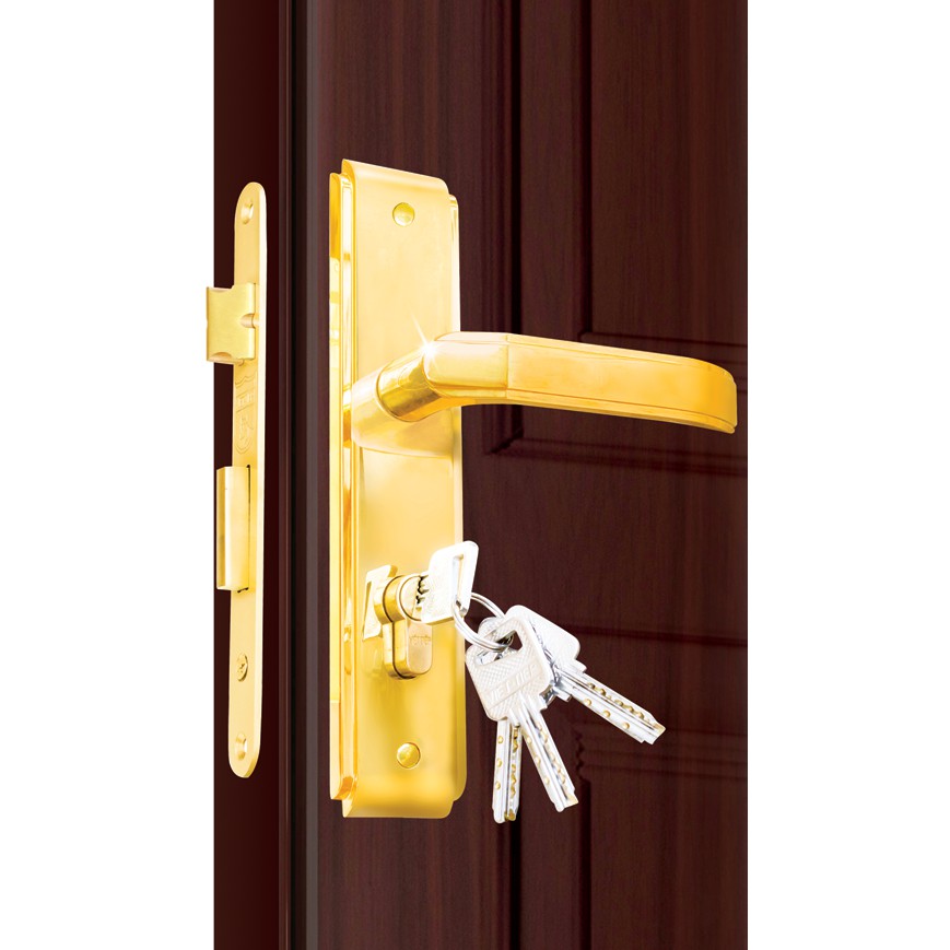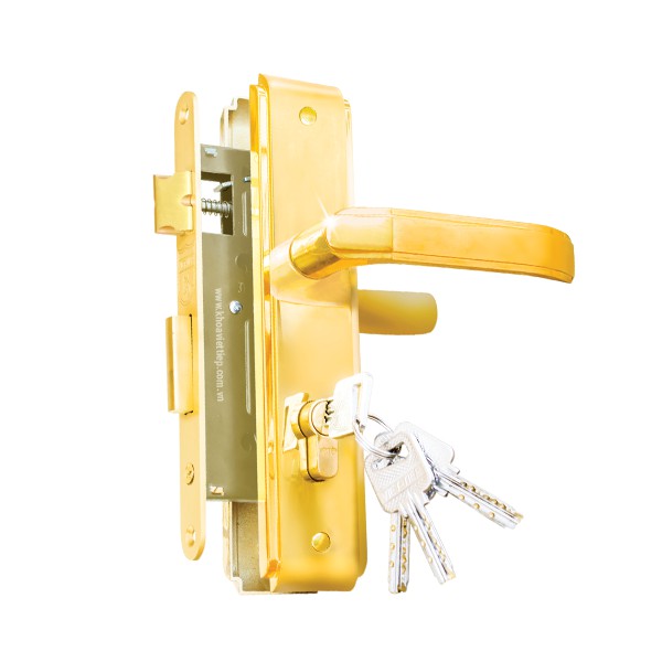 + Hộp khóa bền đẹp, kết cấu chắc chắn. Các chi tiết như then chính, then gió, tấm mặt đầu và tấm đối làm bằng hợp kim đồng.