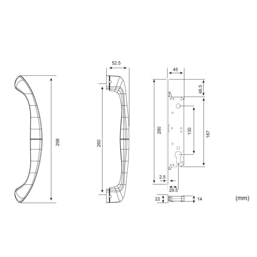 Tay ốp khóa được sản xuất bằng hợp kim ADC12, Sơn tĩnh điện đen Thân khóa được sản xuất bằng tôn thép với độ dày 1,5mm. T