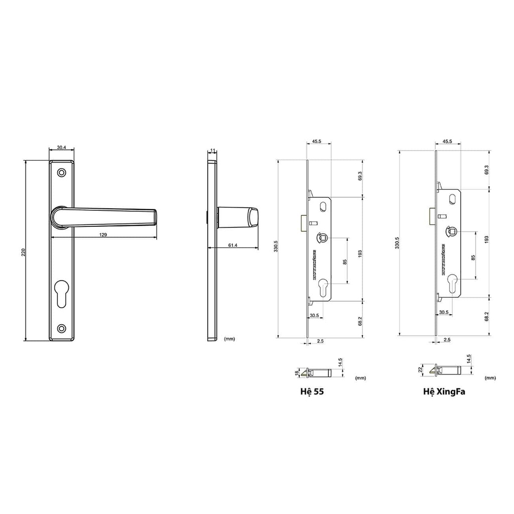 Sản phẩm khóa tay nắm TNDD80-BTT có 2 phiên bản thân phù hợp với các loại nhôm hệ thông dụng như Hệ 55, Hệ XingFa...và 2 phiên bản ốp phụ phù hợp cho các loại cửa 1 cánh hoặc 2 cánh.