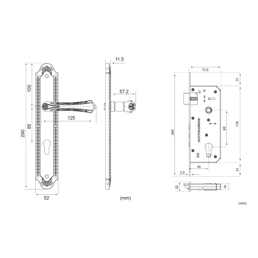Tay ốp khóa được sản xuất bằng hợp kim ZDC-2, mạ đồng giả cổ