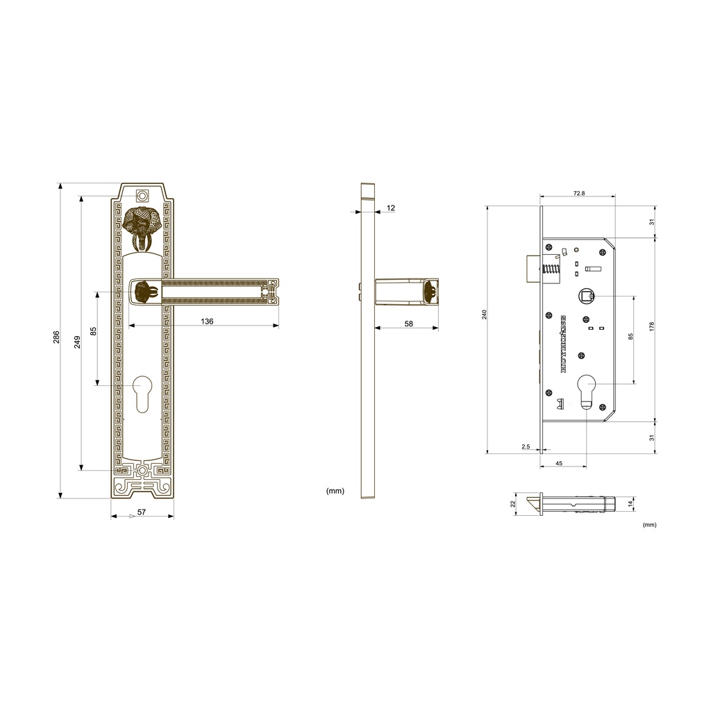 Tay ốp khóa sản xuất bằng vật liệu đồng vàng (đồng thau).