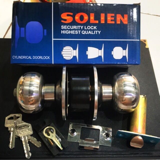 Khóa tay nắm tròn cao cấp solien dùng cho cửa phòng , cửa vệ sinh.Gồm: 3 chìa. Có ốc vít đầy đủ rất tiện cho mua về tự lắp thật dễ dàng mà không tốn quá nhiều thoi gian