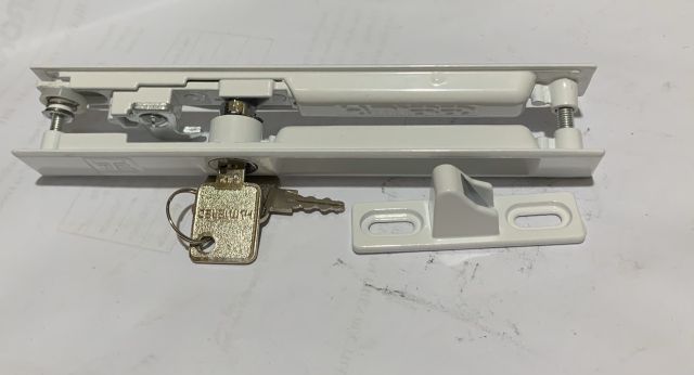 Khóa TB Màu trắng sữa hoặc trắng bạc .Khóa sử dụng cho cửa lùa nhôm .