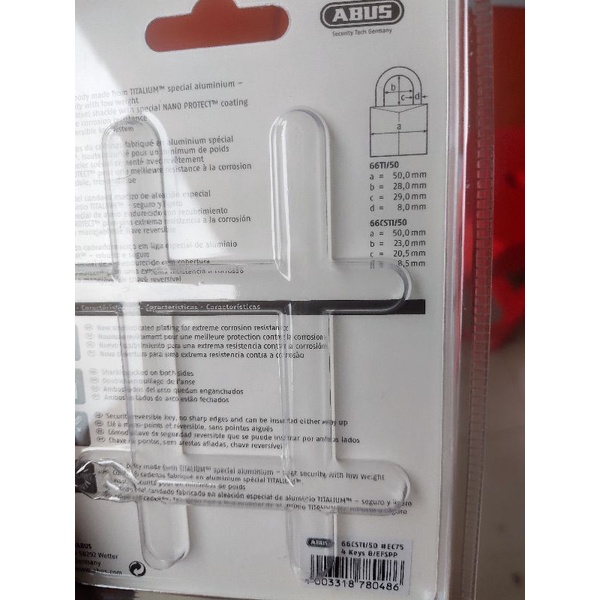 Khóa TREO ABUS CHỐNG CẮT 66CSTi/50 - THƯƠNG HIỆU SỐ 1 CỦA ĐỨC - Made in Germany