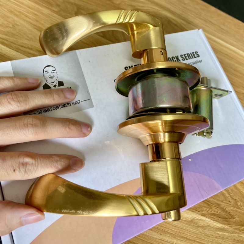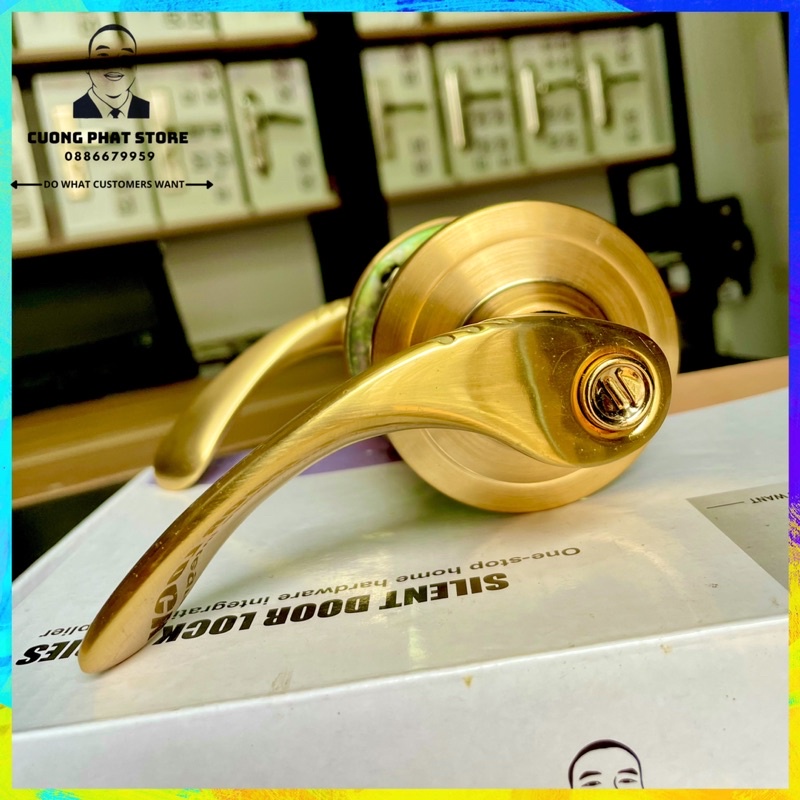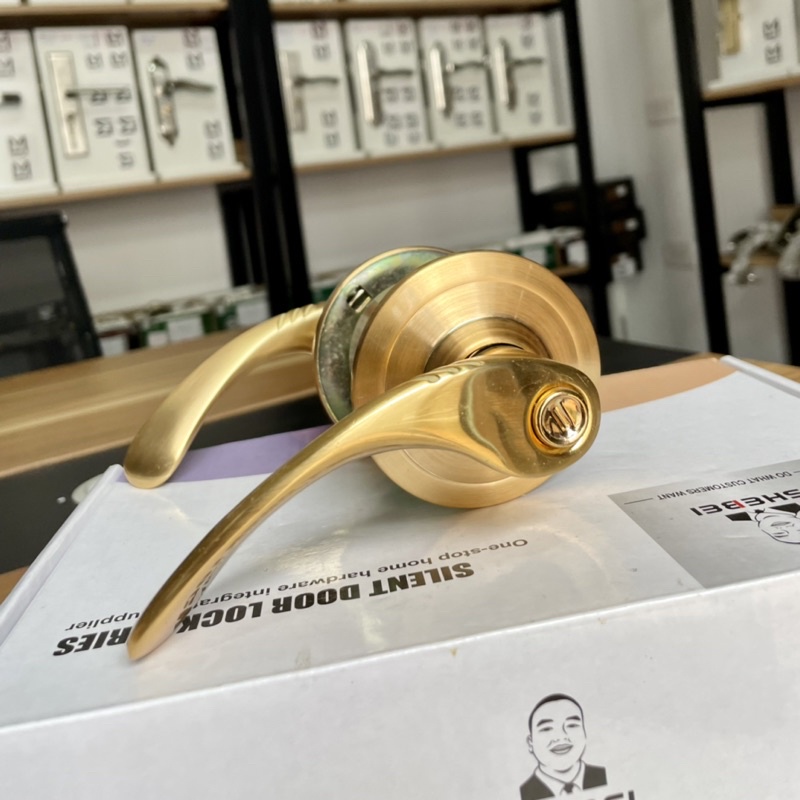 Khoá tròn tay cong màu vàng thay thế khoá đấm tròn dễ dàng• Nếu quý khách đang dùng loại khoá đấm tròn từ xưa mà nay lại muốn đổi gió sang khoá tay gạt thì mẫu này là sự lựa chọn khôn ngoan nhất