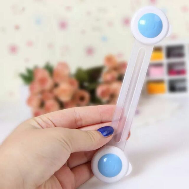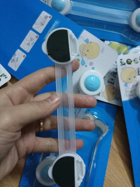 – Chất liệu nhựa trong suốt, có thể uốn cong. Sử dụng băng keo 2 mặt dính ở 2 đầu. Dùng để khóa tủ lạnh, ngăn kéo, hộc tủ tránh cho bé mở bị kẹt tay