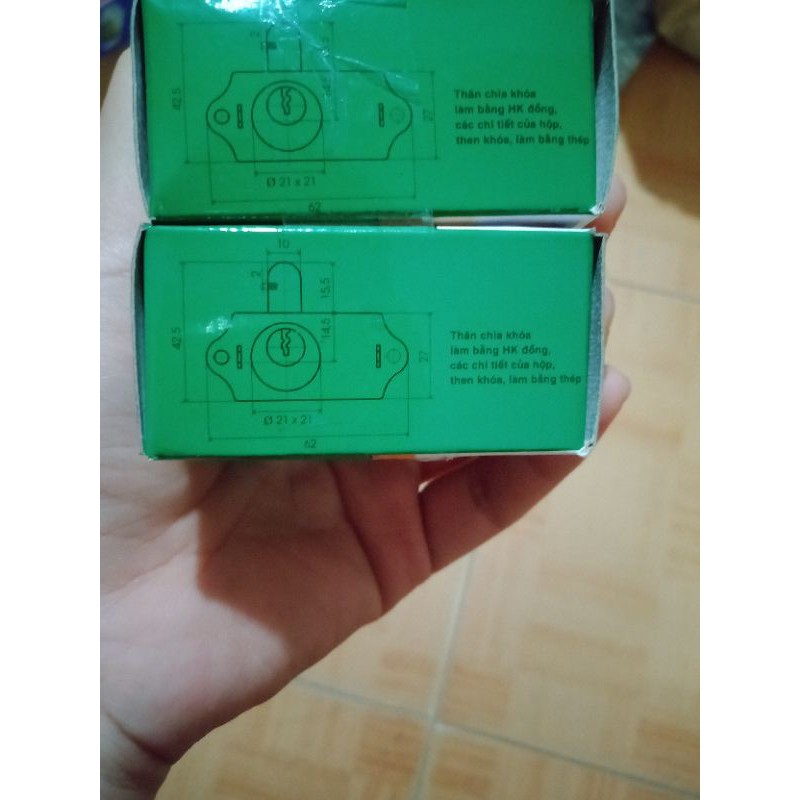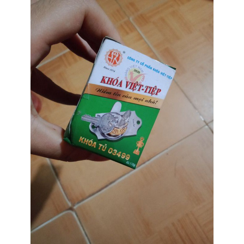 đóng gói:1 hộp:1 ổ,2 chìa khoá,vít,móc khoá,nắp khoá.Sản phẩm khoá tủ Việt-Tiệp chính hãng sản xuất tại Việt Nam trên dây truyền hiện đại,nhỏ gọn,dễ dàng sử dụng,tiện lợi. Thích hợp lắp đặt vào cánh tủ,kệ,....Được làm từ chất liệu hợp kim Đồng và 1 số chi tiết nhỏ làm bằng sắt thép khó rỉ,...