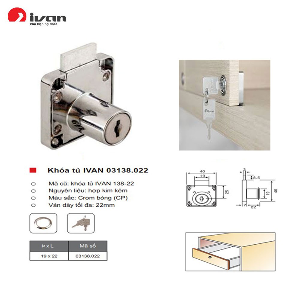 Thông số ổ khóa tủ vuông Ivan