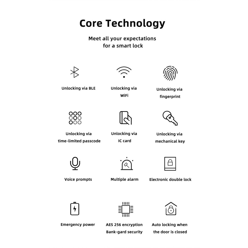 Chức năngBLE / WiFi / Vân tay / Thẻ / Mã PIN /