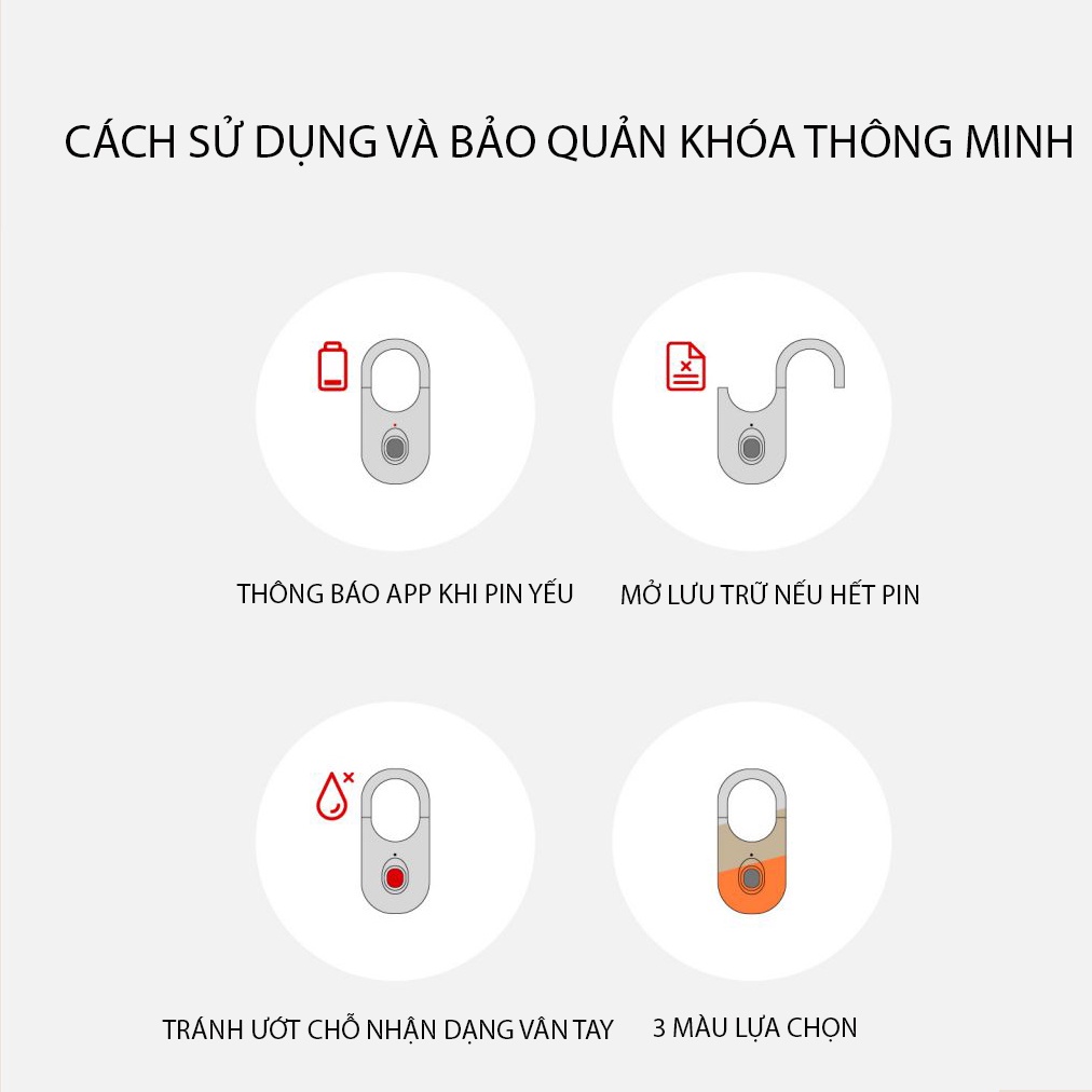 ☑️ Hỗ trợ sử dụng: Vân tay, app