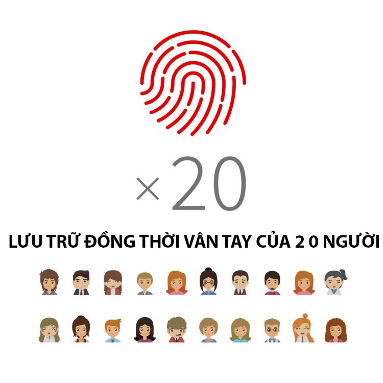 ☑️ Số lượng vân tay lưu trữ: 20 dấu vân tay