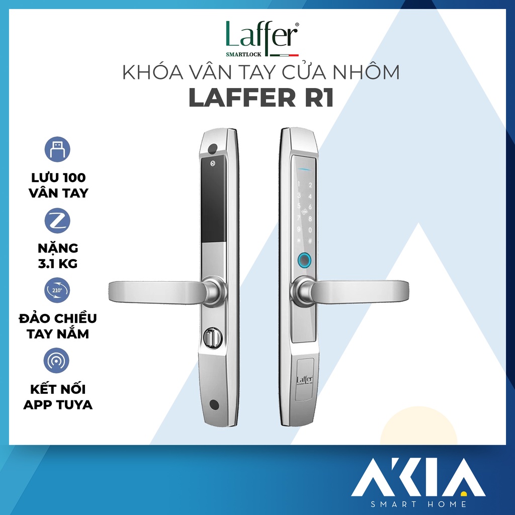 Khoá vân tay Laffer R1 cho cửa nhôm xingfa, cửa đố nhỏ, khoá Tuya sử dụng app Smartlife để điều khiển