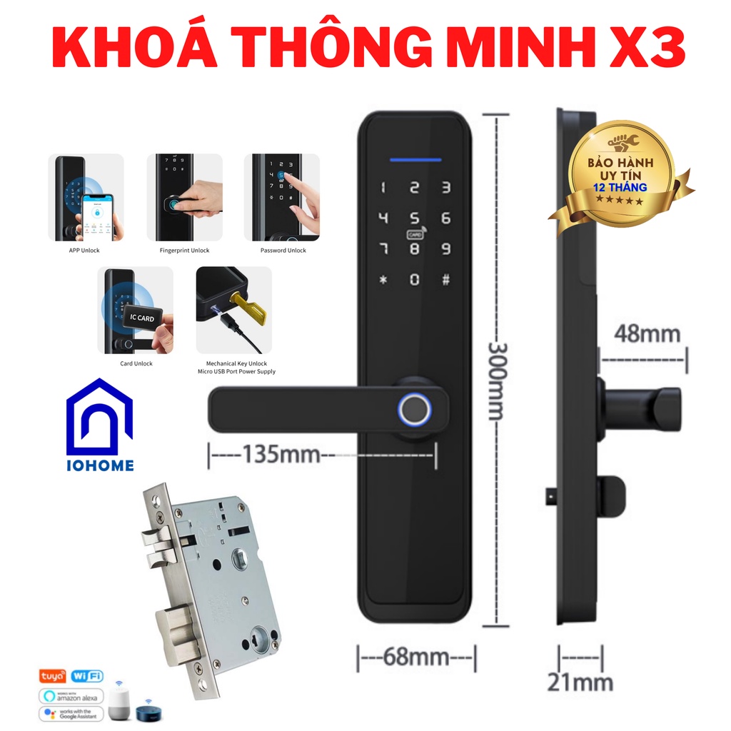 Khóa vân tay thông minh Tuya X3 wifi - Zigbee mở khóa vân tay, thẻ từ, chìa cơ, mật khẩu, APP điện thoại Tuya Smart