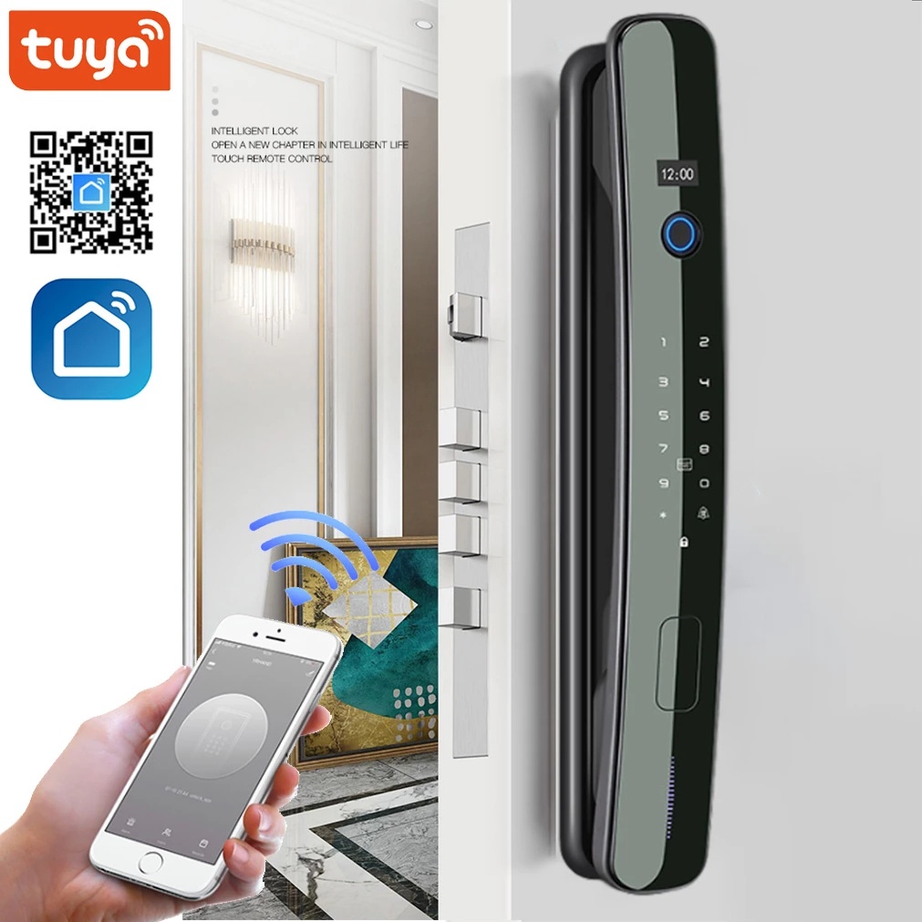 Khoá vân tay thông minh TUYA mẫu 2021 bảng to sang trọng tự động chốt khoá bên trong - Khoá vân tay TUYA PUSH PULL