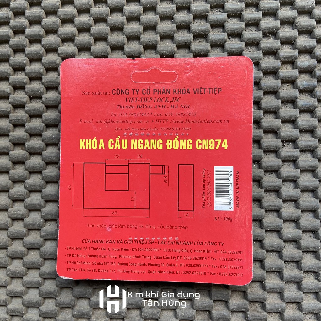 Nhà cửa & Đời sống > Bảo hộ gia đình > Khóa, ổ khóa || KHOÁ VIỆT TIỆP CẦU NGANG ĐỒNG CÁC CỠ 05206 -CN971- CN974Còn hàng