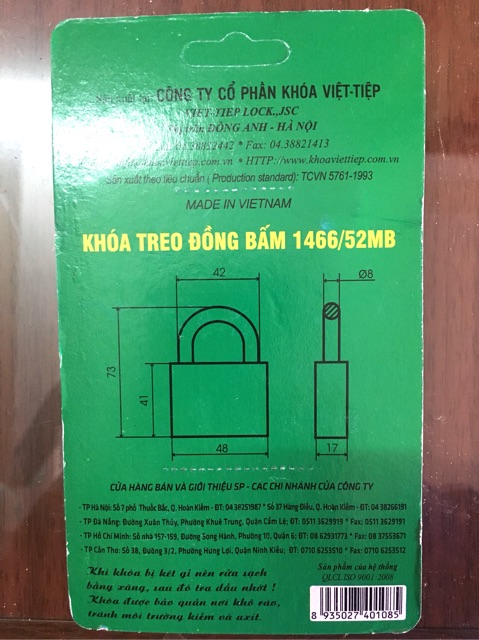 Khóa Việt Tiệp đồng bấm 52MB CHÍNH HÃNG
