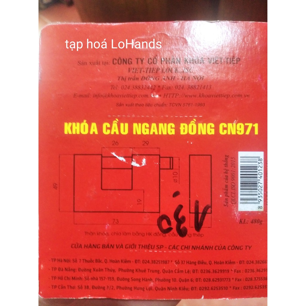 KHÓA VIỆT TIỆP ĐỒNG LOẠI CẦU NGANG CẦU 10