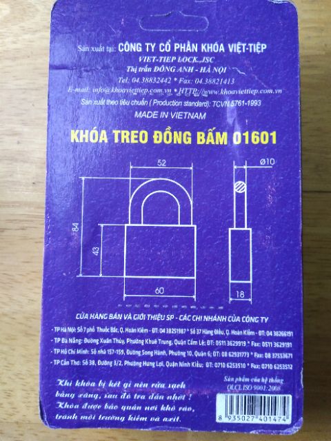 Giới thiệu Khoá Việt Tiệp treo đồng bấm 01601