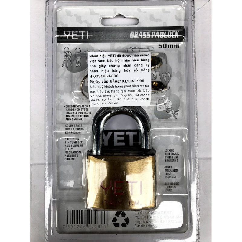 Nhà cửa & Đời sống > Bảo hộ gia đình > Khóa, ổ khóa || Khoá Yeti chìa vi tính chính hãngCòn hàng