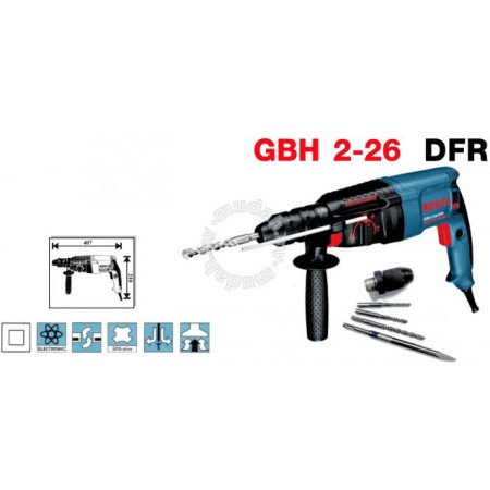KHOAN BÚA BÊ TÔNG BOSCH GBH 2-26- KHÔNG KÈM ĐẦU CHUYỂN VÀ MŨI KHOANMáy khoan búa Bosch 800W GBH 2-26DRE có tuổi thọ lâu dài, dù sử dụng cho các công việc nặng, nhờ có thân máy chắc chắn và thiết kế nhỏ gọn. Sản phẩm chính hãng của Bosch được sản xuất theo công nghệ của Đức.