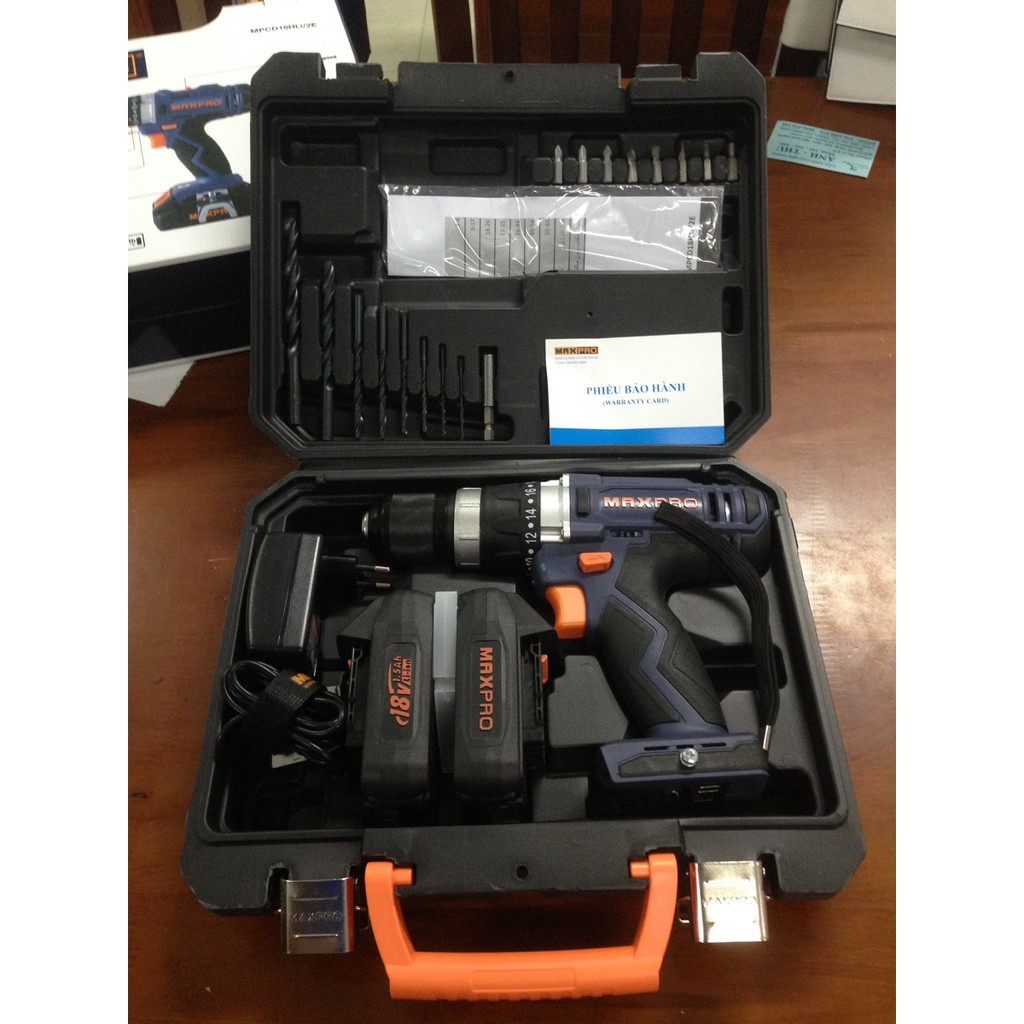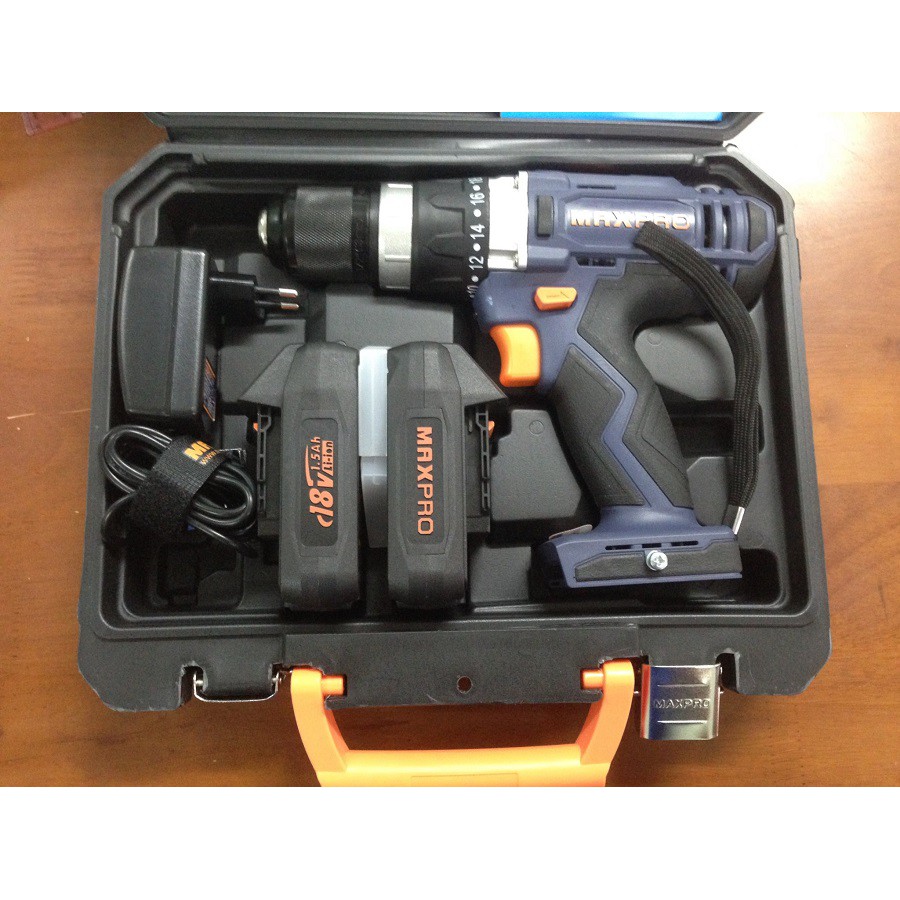 Máy khoan pin Maxpro MPCD 18HLI/2E có hộp đựng nhựa đi kèm