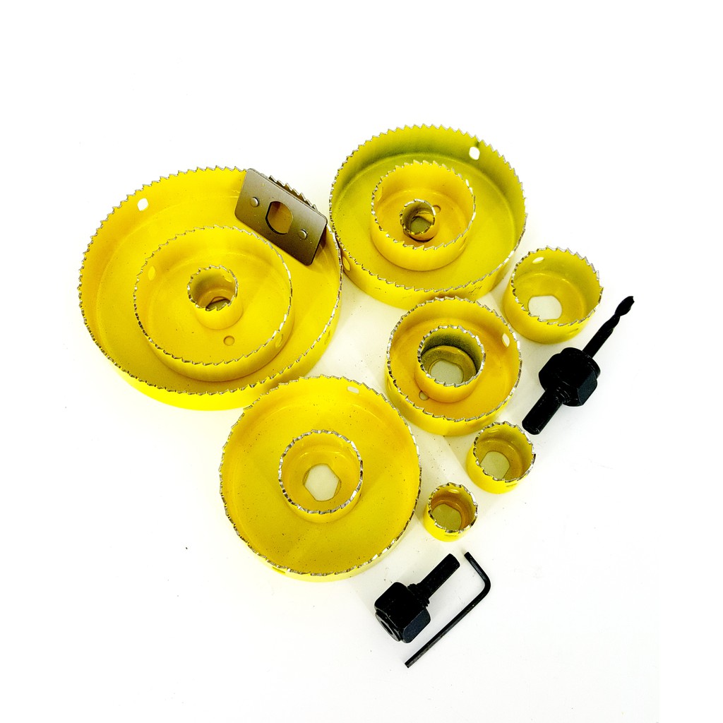Có 16 món , khoét được phi lớn nhất là 127mm.khoét gỗ, hoặc trần thạch cao đều được.