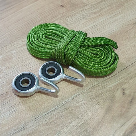 Giới thiệu Bộ Khoen Mắc Võng Bi Vòng Kèm 4,5m Dây Dù Bản Dẹp 1,5cm