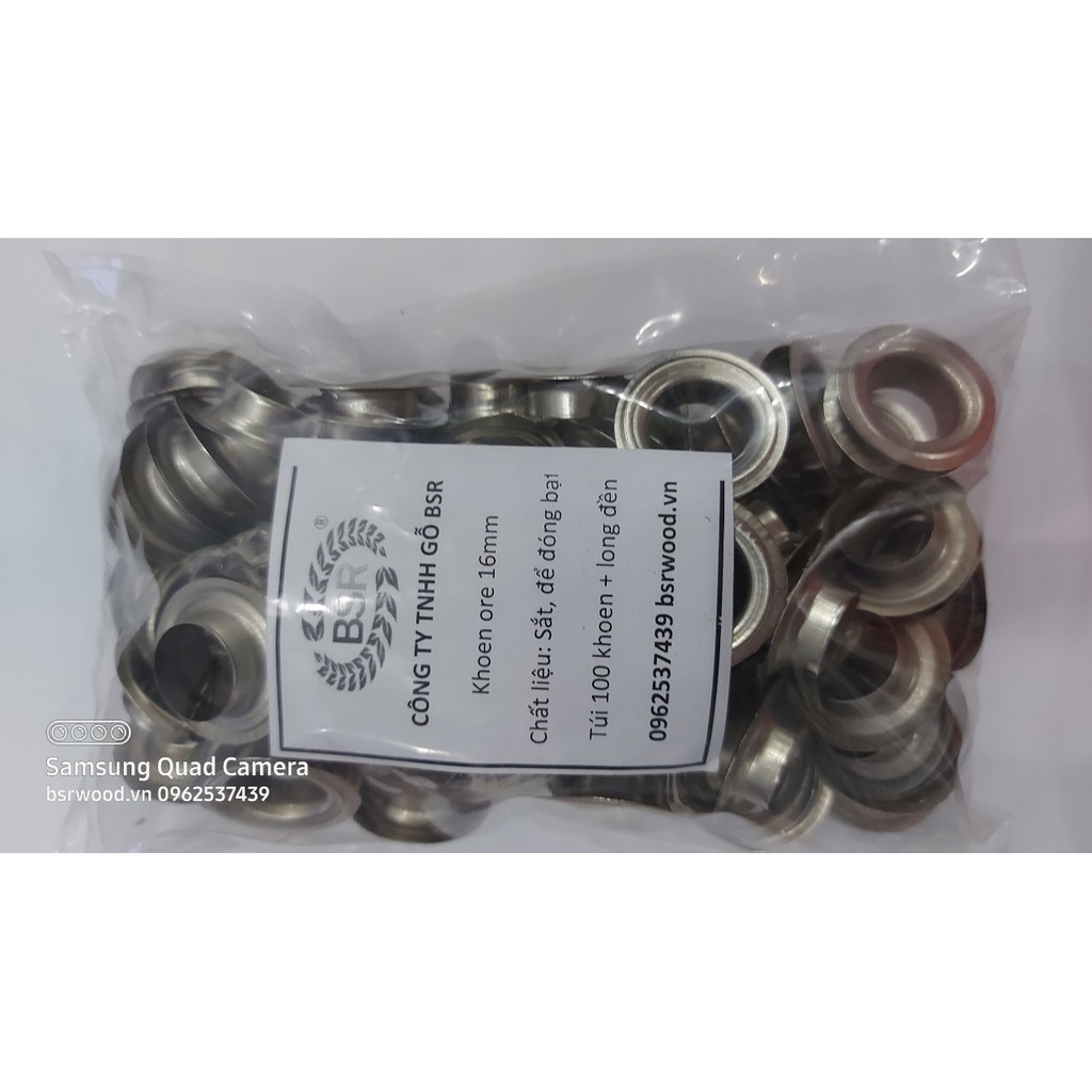 Khoen ore 16mm Khuy mắt cáo đóng bạt, bấm bạt, bấm vải Bằng sắt Túi 100 cái + 100 long đền