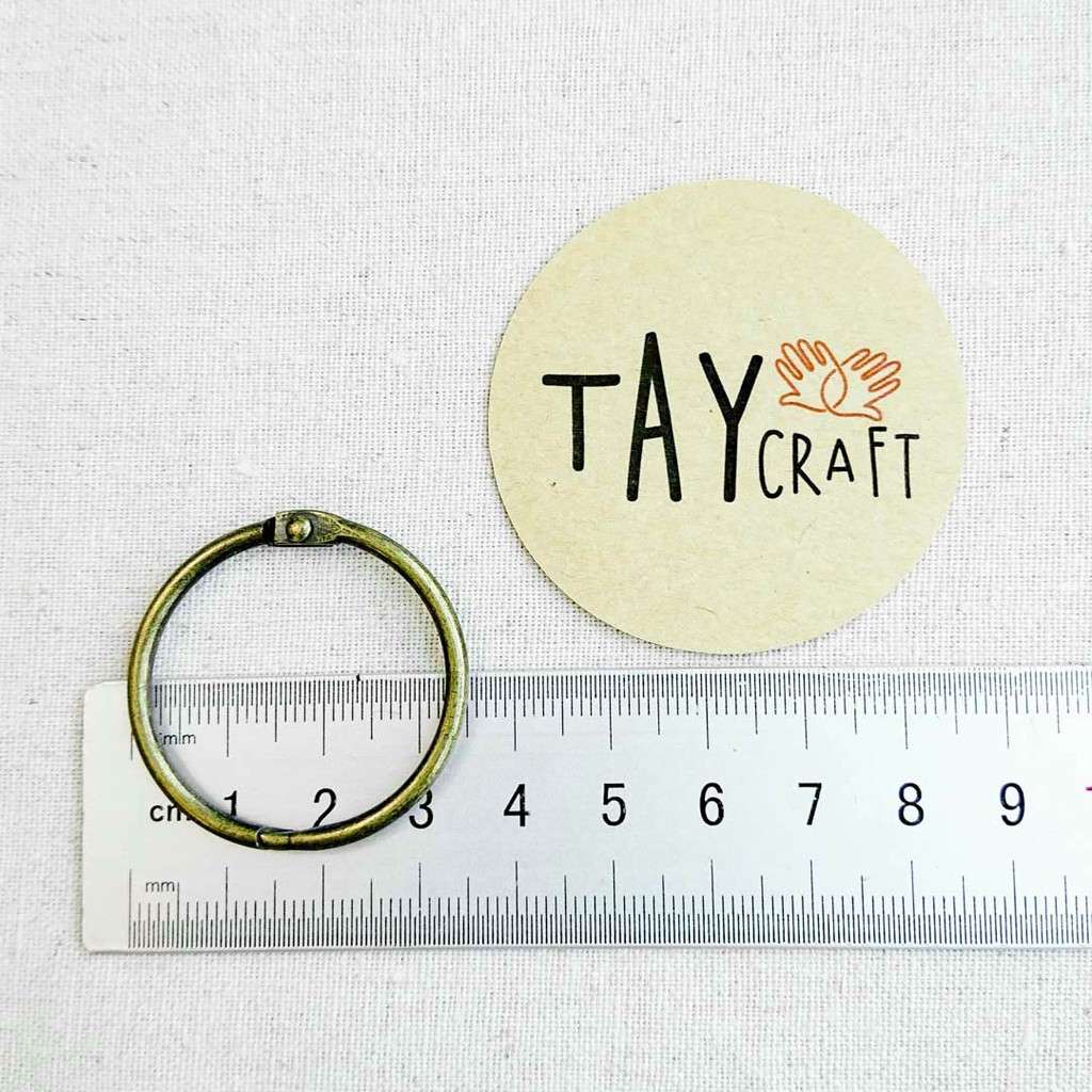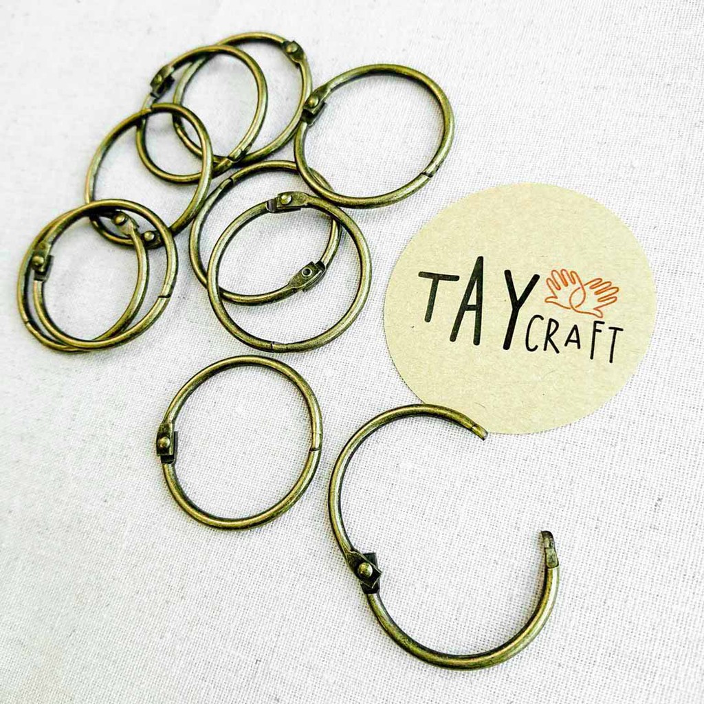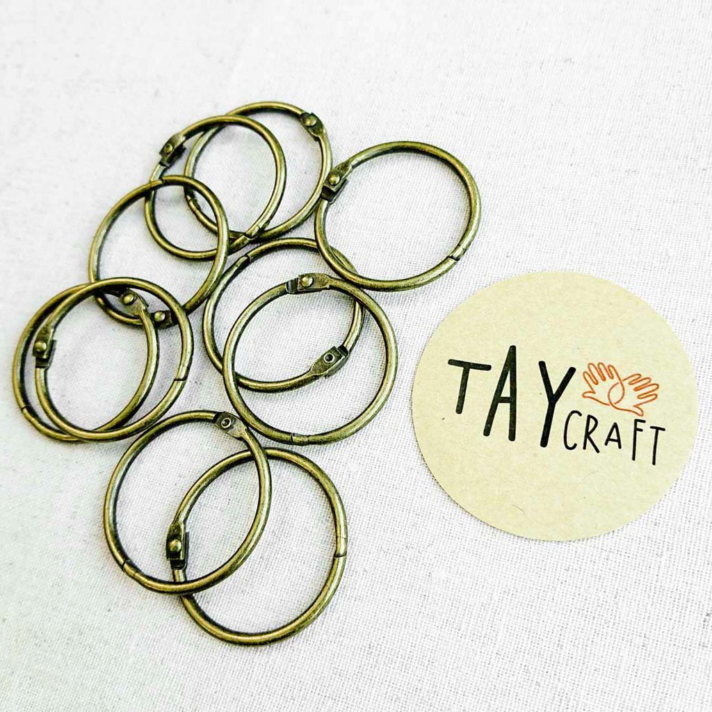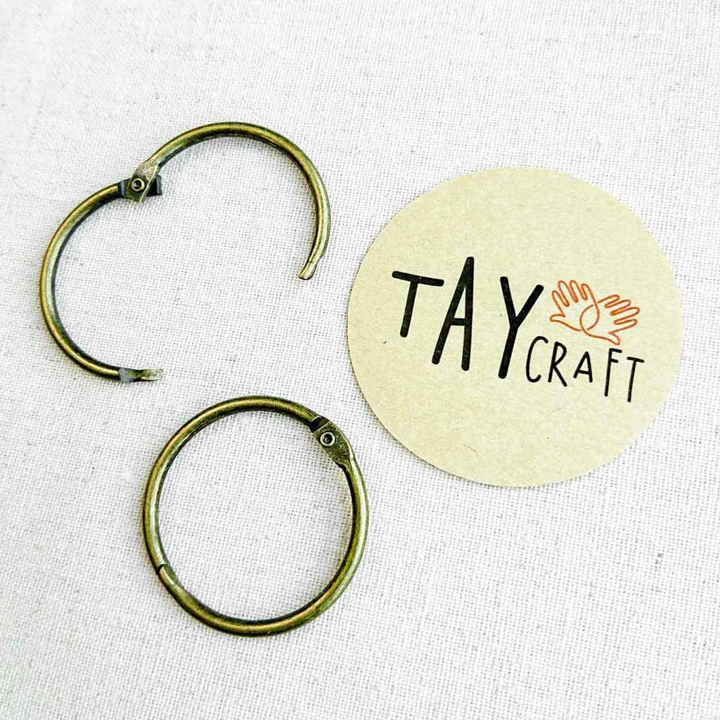 Khoen tròn bằng kim loại giả cổ là phụ kiện để làm móc chìa khóa, túi giấu chìa khóa, làm khoen cho gáy sổ sách handmade. Khoen dạng bấm dễ sử dụng và cực kỳ chắc chắn, chất liệu dày dặn, gia công bền đẹp.Kích thước: